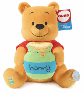 Peek-a-Boo! It’s Winnie the Pooh! GUND’s newest interactive friend is cuddly, sweet, and has so much to do and say. With the press of a button, he springs to life by raising and lowering his arms, hiding behind his honey pot, and surprising kids with a game of peek-a-boo.